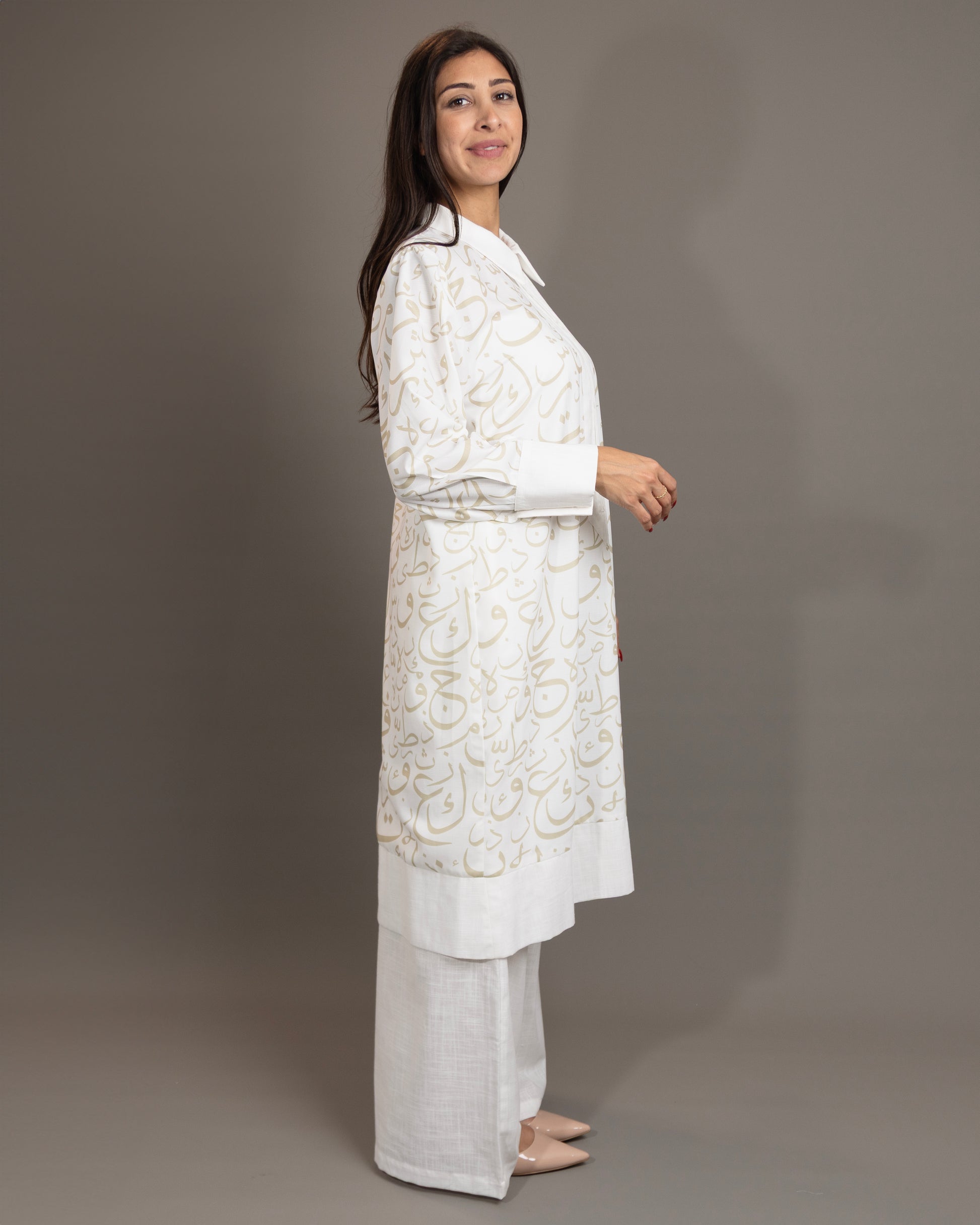 Elegant Omra cloth adorned with beautiful calligraphy patterns. Lightweight, breathable, and perfect for pilgrimage or religious occasions.